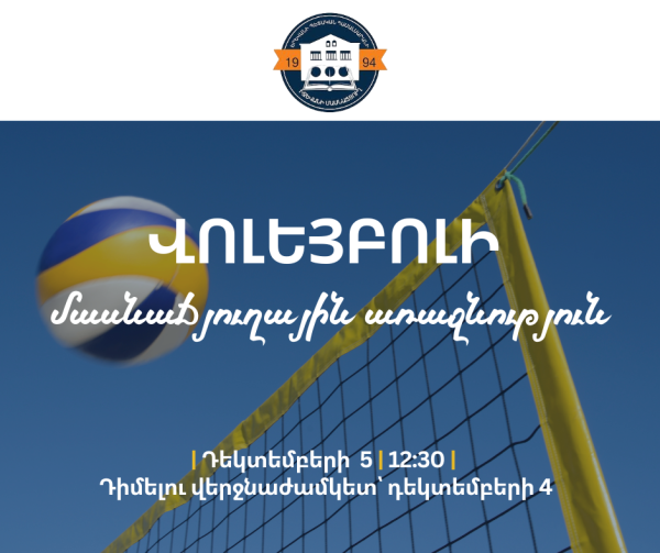 Սիրելի՛ համալսարանականներ, ԵՊՀ Իջևանի մասնաճյուղը կազմակերպում է վոլեյբոլի մասնաճյուղային առաջնություն, որը տեղի կունենա 2025 թ. դեկտեմբերի 5-ին՝ ժամը 12:30-ին, ԵՊՀ ԻՄ մարզադահլիճում:
