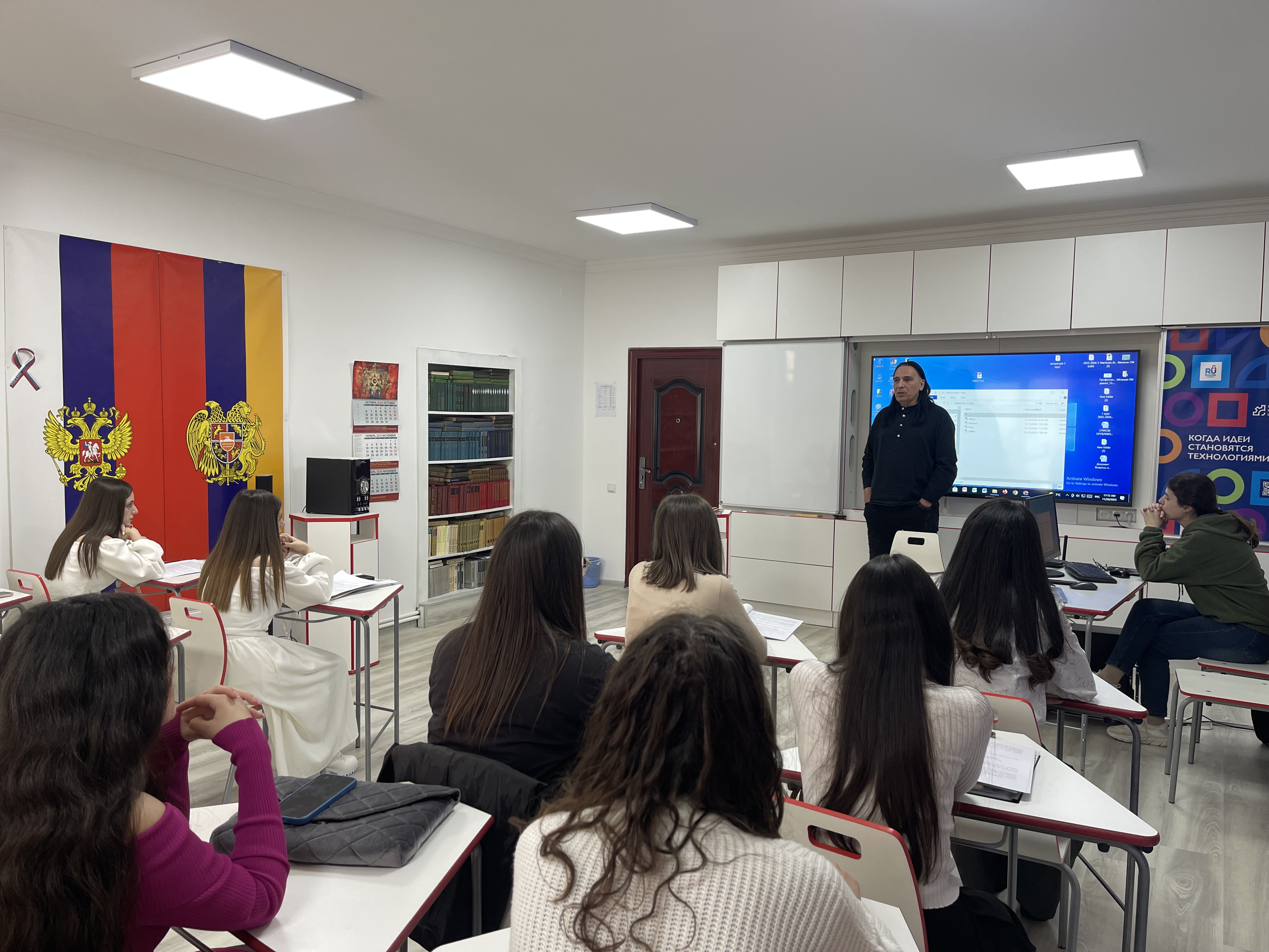 The seminar was conducted in collaboration with Associate Professor of the Department of Foreign Languages, Ph.D. M. Zurabyan, and lecturer of the same department Elena Shuvaeva, who is also a member of the Writers' Union of Armenia, the Writers' Union of Russia, and the International Union of Writers named after Saints Cyril and Methodius.