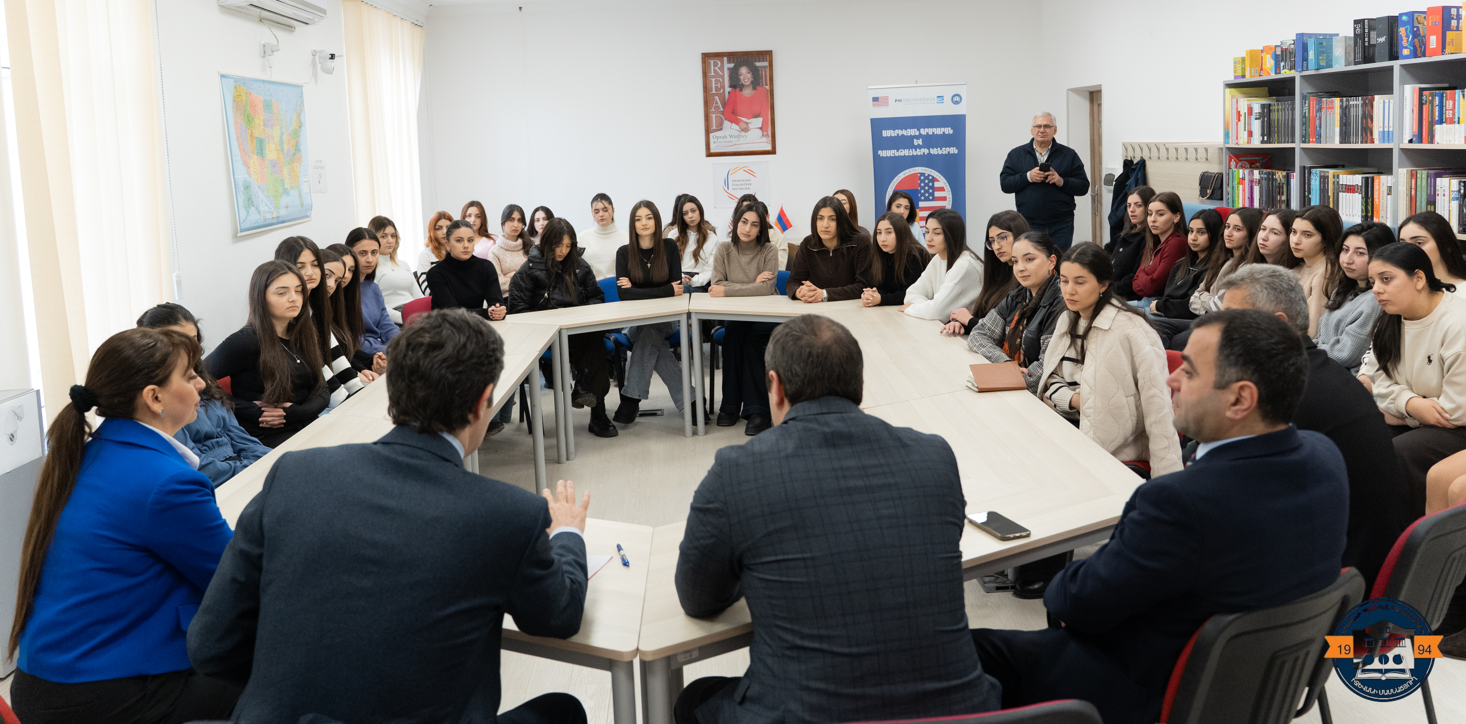 Then, the delegation met with students of the “English and Literature” educational program, which was attended by the Director of the YSU IB M. Otaryan, Deputy Governor of Tavush region Narek Ghushchyan, Head of the Educational and Methodological Department A. Davtyan, Acting Dean of the Faculty of Humanities N. Grigoryan, and lecturers of the Chair of Foreign Languages.