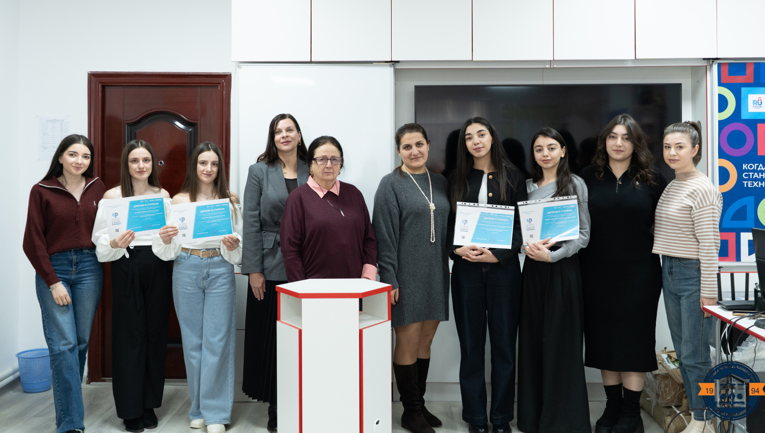 On December 25, a solemn ceremony of awarding their diplomas was held at YSU IB, which was attended by the Acting Dean of the Faculty of Humanities N. Grigoryan, Professor of the Chair of Foreign Languages S. Minasyan, Lecturer of the same department E. Shuvaeva, and 3rd -year students of the “Russian Language and Literature” educational program.