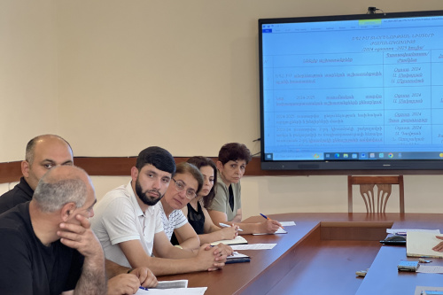 Along with the changes proposed by the members of the board, the annual work plan of the YSU IB directorate, office administration specialist job description of the faculty office of Ijevan branch of YSU were approved at the meeting. Preparations for the new 2024-2025 academic year, the results and problems of the existing teaching admissions for the 2024-25 academic year, questions related to the summation of the examination period of the existing bachelor's degree of the 2nd semester of the 2023-24 academic year and the examination period of the 2nd semester of the distance learning of the bachelor's and master's degree, the provision of nominal scholarships for the 1st semester of the 2024-25 academic year (Vazgen Sargsyan, Monte Melkonyan).