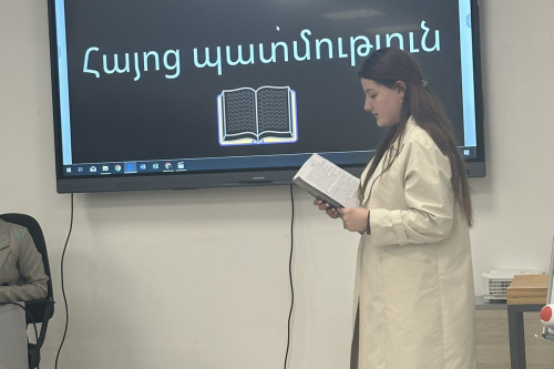 Then, the Department of the Organization of Practice and Cooperation with Stakeholders, together with the Student Scientific Society, organized the intellectual game “Amenakhelatsin” for 12 students of Aygehovit Secondary School.