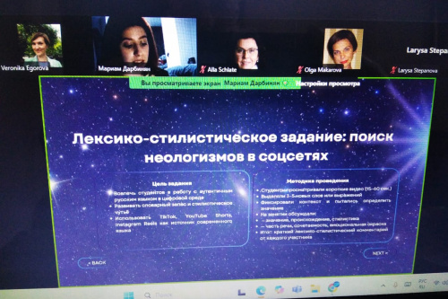 Nazeli Yesayan presented a report on “Speech Ethics in the Virtual Space: Effective Teaching of Russian as a Foreign Language”, touching upon the issues of developing speech culture among Russian learners in an online environment. Mariam Darbinyan delivered a report on “Modern Technologies in Teaching Russian as a Foreign Language at the University Level”, presenting a study on modern perspectives on teaching Russian. The presented reports were received with great interest.