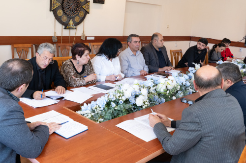 N. Arushanyan, Head of the Department of Organization and Control of the Educational Process, reported on the first issue: the process of resubmitting academic debts accumulated up to 12 credits and the process of organizing subject repetitions. In particular, it was noted that 33 students (4 on-site students of the Faculty of Natural Sciences, 24 off-site students of the Faculty of Economics, 5 off-site students of the Faculty of Humanities) applied to retake their accumulated academic debts of up to 12 credits in the 2nd semester of the 2024-2025 academic year, 32 of whom successfully retaken their academic debts, and 1 student did not retake them.