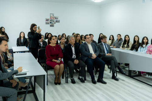 Then, a meeting of the delegation with the students of the "Foreign Language and Literature" specialty took place in the Aida Mardanyan auditorium, which was attended by the Director of the YSU IB M. Otaryan, the Head of the Educational and Methodological Department A. Davtyan, the Acting Dean of the Faculty of Humanities N. Grigoryan, and lecturers of the Chair of Foreign Languages.