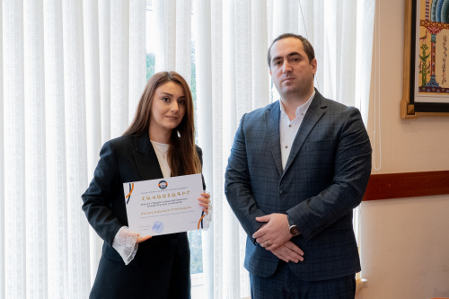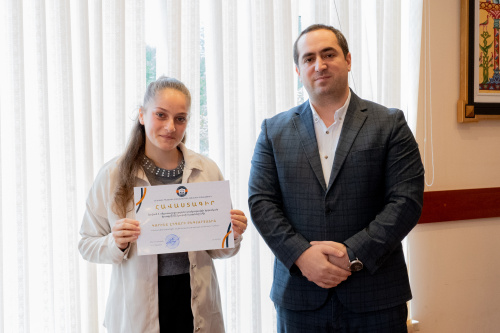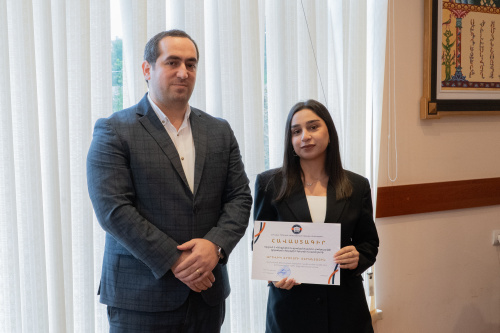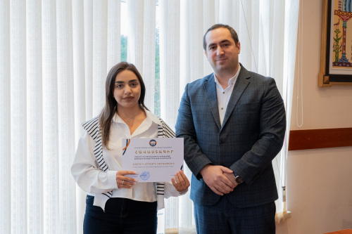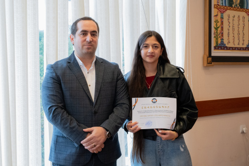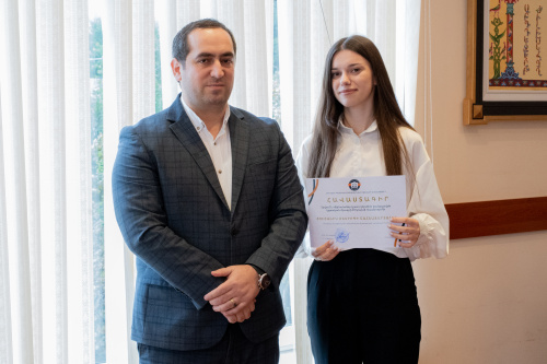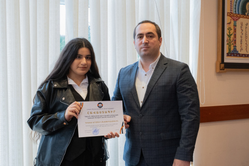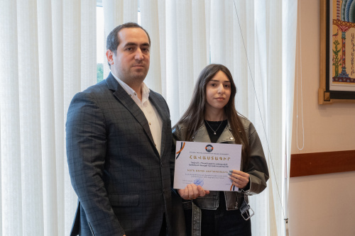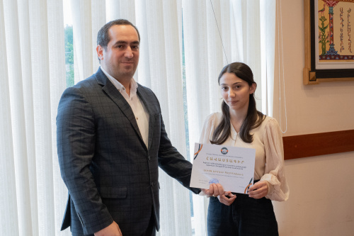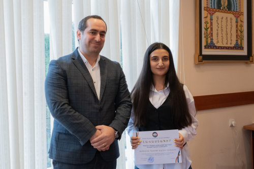 First, YSU IB Director M. Otaryan welcomed and congratulated the students, emphasizing that starting from this year, students who received a nominal scholarship and full tuition reimbursement will be solemnly presented with certificates.