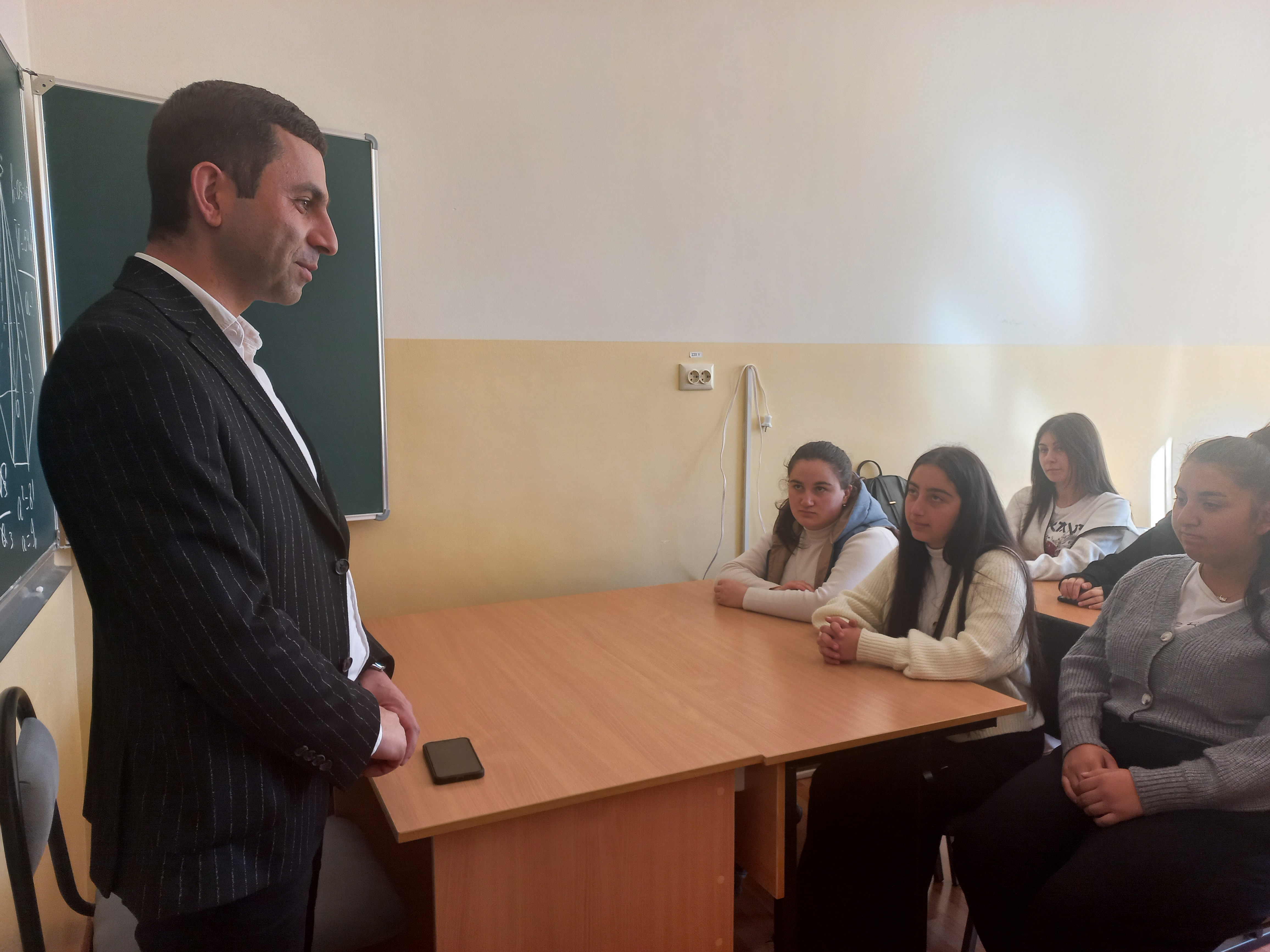 During the meetings, the branch's lecturers, with the participation of principals and teachers, gave lectures to pupils in grades 9-12 in the subjects of "History", "Physics", "Armenian Language", "Russian Language", "English", "Technology" and others. A number of topics that were relevant, current, and also of interest and motivation for schoolchildren were selected for the lectures, and at the end of the lectures, discussions and exchanges of ideas were held.