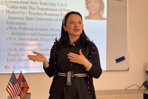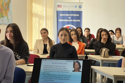 Այնուհետև իրականացվեց դասախոսություն-աշխատարան՝ «Անգլերեն լեզու և գրականություն» կրթական ծրագրի երրորդ և չորրորդ կուրսերի ուսանողների և ամբիոնի դասախոսների մասնակցությամբ: