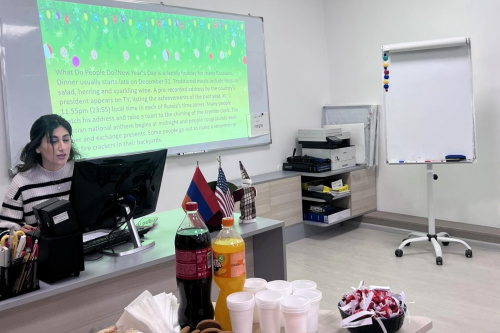 Ուսանողները անգլերենով և ֆրանսերենով ներկայացրին նաև տոնի ծագումը, ամանորյա խորհրդանիշները և նվերների տեսակները: Նրանք ստացան անակնկալ մաղթանքներ և խորհուրդներ գալիք տարվա համար և խոստացան հետևել դրանց: