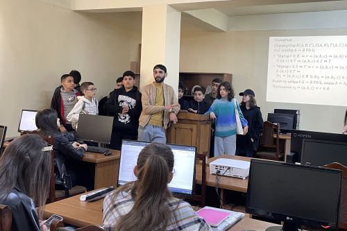 Աշակերտների հետաքրքրությունների շրջանակն ընդգրկում էր բնական գիտությունների ոլորտը: Դպրոցականները հանդիպեցին Ծրագրավորման և ինֆորմացիոն տեխնոլոգիաների ամբիոնի վարիչ, տեխ. գ. թ., դոցենտ Ա.Հովակիմյանի, տեխ. գ. թ., դոցենտ Ռ.Յոլչյանի, ասիստենտ Մ.Ճաղարյանի հետ: Դասախոսները դպրոցականներին ներկայացրին ԵՊՀ ԻՄ-ի բնական գիտությունների ֆակուլտետում իրականացվող «Ինֆորմատիկա և կիրառական մաթեմատիկա» կրթական ծրագիրը և աշխատաշուկայում վերջինիս ունեցած պահանջարկը, ֆակուլտետում առկա նյութատեխնիկական ռեսուրսները, տեղեկատվական տեխնոլոգիաների ոլորտում ժամանակակից նախագծերը և զարգացման հեռանկարները: