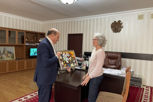 Հանդիպման վերջում ԵՊՀ ԻՄ-ի տնօրենի պաշտոնակատար Ա.Մակարյանը մասնաճյուղի անունից Վերոնիկ Նուեին նվիրեց «Դեկորատիվ-կիրառական արվեստ» կրթական ծրագրի 3-րդ կուրսի ուսանողուհի Իննա Եգանյանի «Գարուն» վերնագրով աշխատանքը (ղեկ.՝ Ա.Չիբուխչյան):