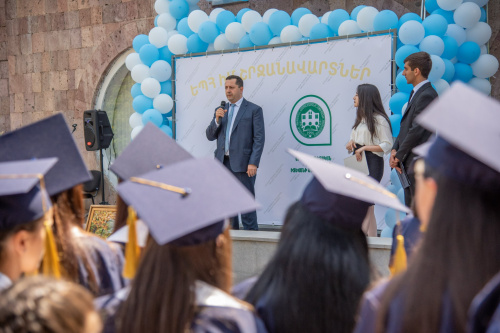 Միջոցառման առաջին մասում Մայր բուհի ռեկտոր Հ.Հովհաննիսյանի գլխավորությամբ տեղի ունեցավ շրջանավարտների դիպլոմների հանձնման հանդիսավոր արարողությունը, որի ընթացքում շնորհավորանքի և բարեմաղթանքի խոսքերով հանդես եկան ԵՊՀ-ի ռեկտոր Հ.Հովհաննիսյանը, ԵՊՀ ԻՄ-ի տնօրենի պաշտոնակատար Ա.Մակարյանը և մասնաճյուղի այս տարվա շրջանավարտ Էդիտա Գրիգորյանը: