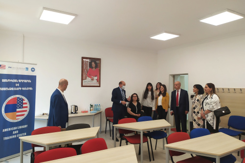 Ապա կազմակերպվեց շրջայց մասնաճյուղում, որի ընթացքում հյուրերը տեղում ծանոթացան բուհի վարչական ստորաբաժանումների, գործող կենտրոնների և ամբիոնների գործունեությանը, մասնագիտություններին, գրադարանային ֆոնդին, երկու բուհերի ներկայացուցիչներն իրար փոխանցեցին իրենց առաջավոր փորձը: