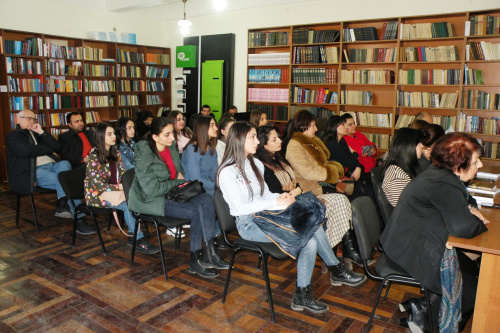 «Հովհաննես Թումանյան. Մարդը և բանաստեղծը» թեմայով հետաքրքիր զեկուցմամբ հանդես եկավ ԵՊՀ ԻՄ-ի հայոց լեզվի և գրականության ամբիոնի դեցենտ, բ.գ.թ. Ալիսա Հասանյանը: Սեղմ անդրադառնալով գրքի հեղինակ Վարդգես Ահարոնյանի կենսագրությանը, հասարակական-քաղաքական և ստեղծագործական ուղուն՝ բանախոսը նշեց. «Ընտանեկան միջավայրը, հոր հասարակական-քաղաքական գործունեությունը, Թիֆլիսի հայ մտավորականության հետ ունեցած մտերմությունը դեռ պատանեկան տարիներից հնարավորություն է տվել, որ հեղինակը ճանաչի մեծերին և տարբեր իրավիճակներում առնչվի նրանց հետ: Այս հիիշողությունները տարիների հեռավորությունից դարձել են հուշապատում, որոնց մեջ իր գրականագիտական ասելիքով, իսկապես խոր ու համապարփակ մեկնաբանություններով աչքի է ընկնում «Հովհ. Թումանյան. մարդը և բանաստեղծը» գիրքը»: Տիկին Հասանյանի համոզմամբ՝ Ահարոնյանի աշխատությունն ունի դաստիարակչական, ճանաչողական և դասագրքային արժեք: Հեղինակն իրադարձությունների գունեղ նկարագրություններով բացահայտում է Մեծ լոռեցու խառնվածքը, հարաբերություններն ընտանիքի ու միջավայրի հետ, առանձին գործերի վերլուծության միջոցով ներկայացնում գրական վաստակը՝ կարևորելով գեղարվեստական բովանդակությունն ու տաղանդի մեծությունը: