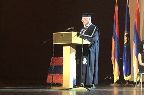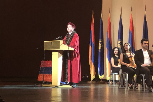 ԵՊՀ ռեկտորի ժամանակավոր պաշտոնակատար Գեղամ Գևորգյանն իր ելույթում ընդգծեց. «Ես համոզված եմ, որ ԵՊՀ-ն մշտապես միջազգային հանրությանը և համաշխարհային քաղաքակրթությանը ներկայանալու է որպես հզոր գիտակրթական ու մշակութային կառույց, մարդկային կապիտալի արժեքավոր ու մտավոր ներուժի անհուն շտեմարան» (ԵՊՀ ռեկտորի ժամանակավոր պաշտոնակատարի ելույթը տե՛ս հետևյալ հղումով):