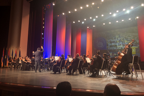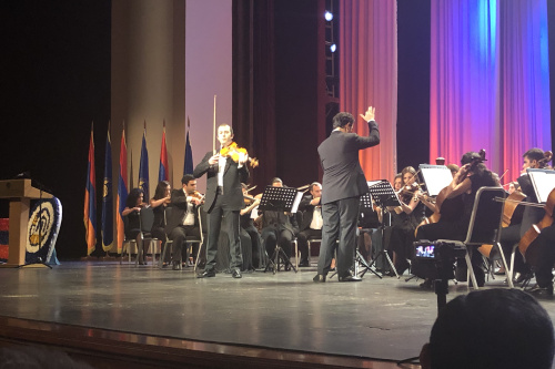 Հնչեցին հատվածներ Արամ Խաչատրյանի «Սպարտակ» և «Գայանե» բալետներից, «Դիմակահանդես» դրամայից, Պիետրո Մասկանիի «Գեղջկական ասպետություն» օպերայից: Հնչեց նաև Արամ Խաչատրյանի ջութակի կոնցերտի 3-րդ մասը, որի մենակատարն էր Հայկ Կազազյանը: Ելույթ ունեցան ՀՀ ժողովրդական արտիստ Հասմիկ Պապյանը և ՀՀ վաստակավոր արտիստ Գևորգ Հակոբյանը, իսկ տոնական համերգի հանդիսավարներն էին ԵՊՀ մշակույթի կենտրոնի սաները: