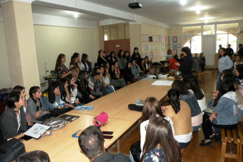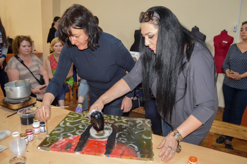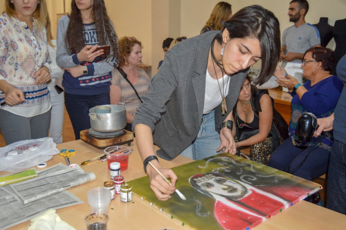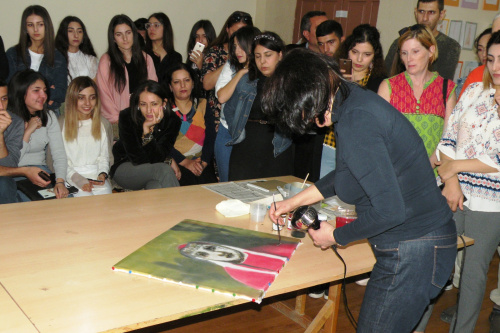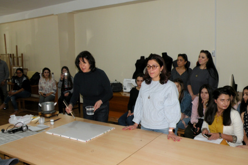 Նկարչուհին դասի ընթացքում ուսանողներին փոխանցեց իր կիրառած տեխնիկայի վերաբերյալ տեսական գիտելիքներ և գործնական հմտություններ: