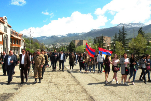 Համալսարանականները ծաղիկներ ու ծաղկեպսակներ դրեցին հուշարձանին՝ մասնակցելով հուշահամալիրի մոտ մարզի հոգևոր դասի ներկայացուցիչների կողմից կատարվող ոգեկոչման արարողությանը: