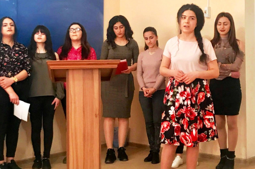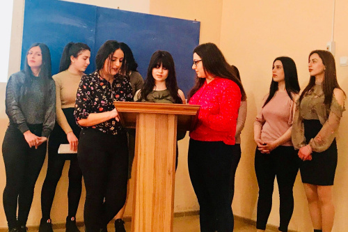 Միջոցառման վերջում ուսանողները բարեմաղթանքներով բացիկներ և ծաղիկներ նվիրեցին միջոցառմանը ներկա դասախոսներին:
