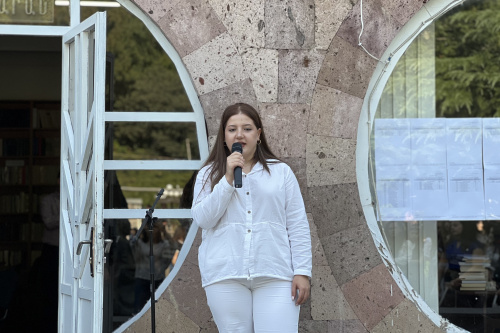 Մասնաճյուղի այս տարվա ամենաբարձր միավորներ հավաքած դիմորդը՝ «Անգլերեն լեզու և գրականություն» կրթական ծրագրի առաջին կուրսի ուսանողուհի Մերի Կարենի Զաքարյանը, ներկայացրեց առաջին կուրսեցու երդումը: