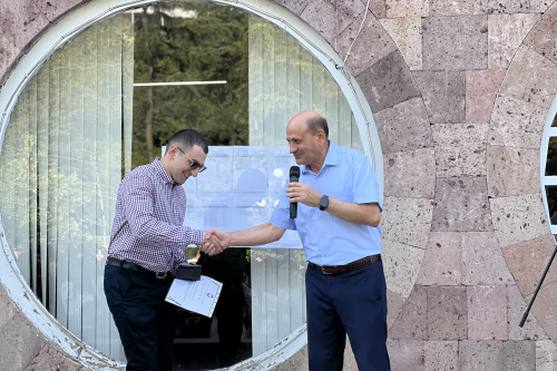 Պարոն Մակարյանը «Դասավանդման գերազանցության մրցանակ-2024» մրցույթում հաղթող ճանաչվելու համար հավաստագիր հանձնեց Տուրիզմի կառավարման և մշակութաբանության ամբիոնի վարիչի պաշտոնակատար, ա.գ.թ., պրոֆեսոր Գուրգեն Հովհաննիսյանին, մրցույթի «Բնական գիտություններ» մասնագիտությունների անվանակարգում հաղթող ճանաչվելու համար՝ Ընդհանուր մաթեմատիկայի և բնագիտության ամբիոնի դոցետ, ֆ.մ.գ.թ. Սերգեյ Ազարյանին: