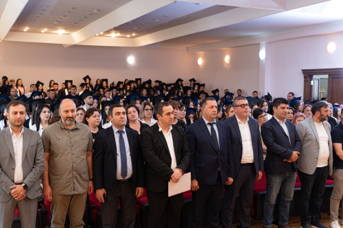 Հանդիսավոր միջոցառումը մեկնարկեց Հայաստանի Հանրապետության օրհներգով և Երևանի պետական համալսարանի հիմներգով: