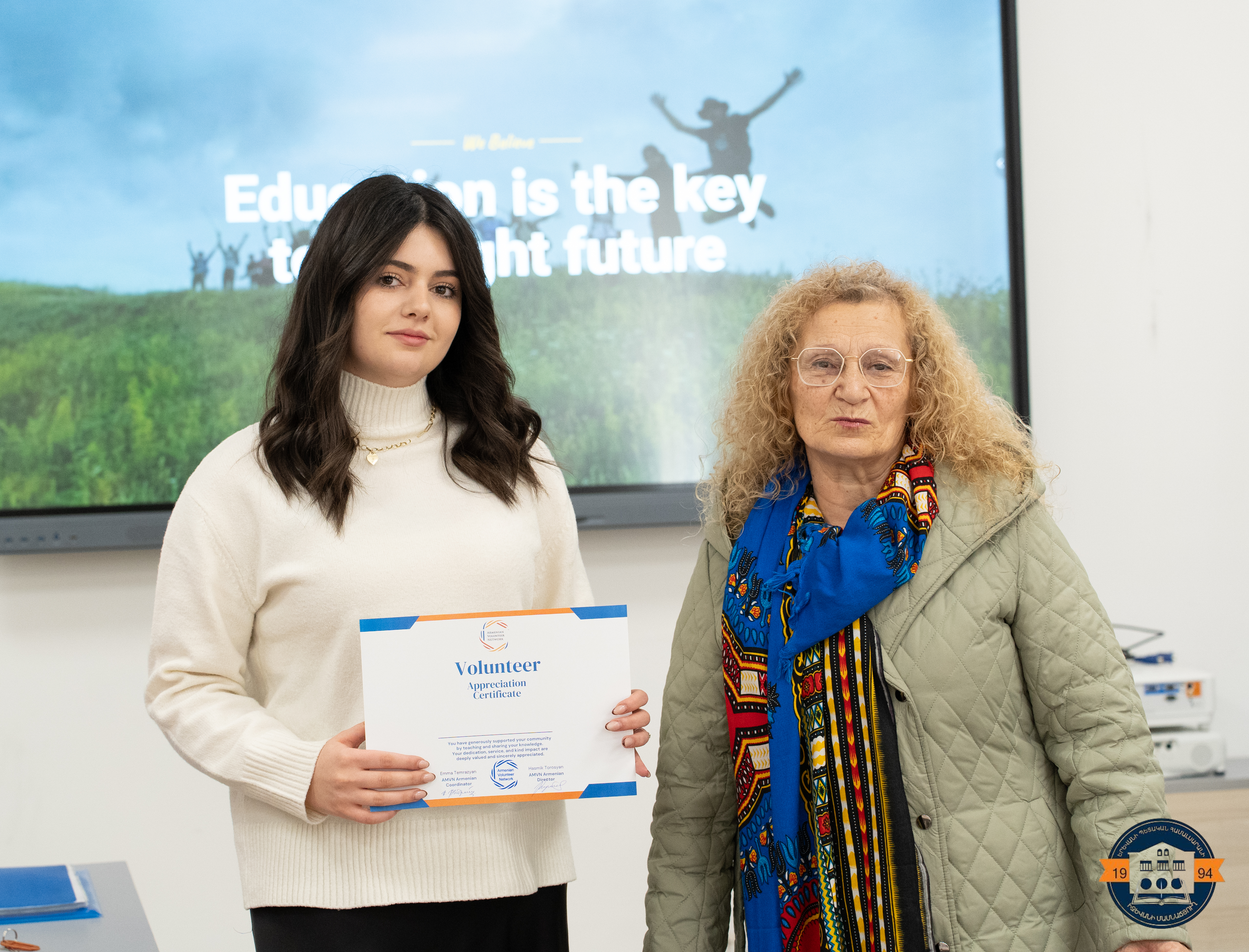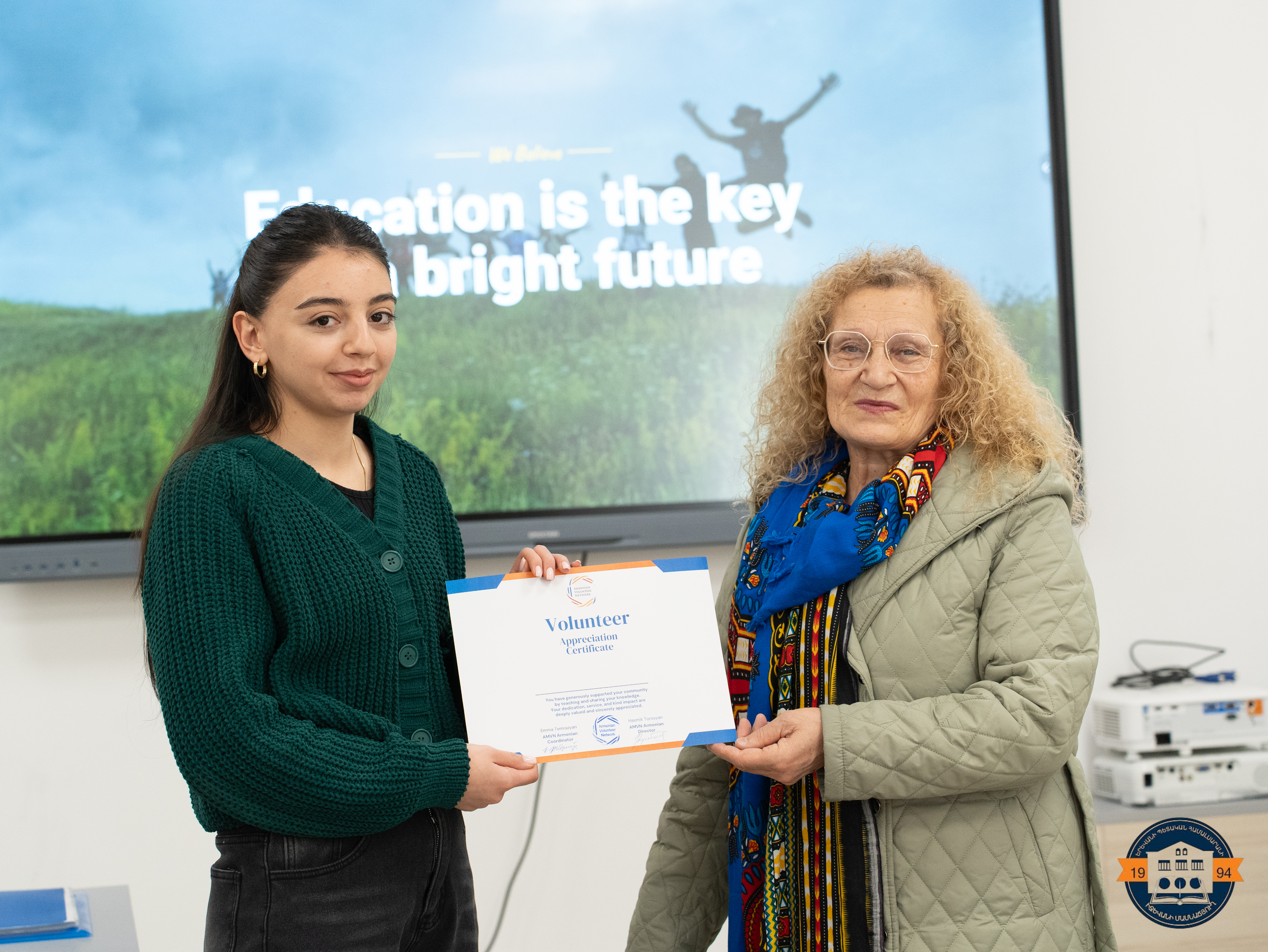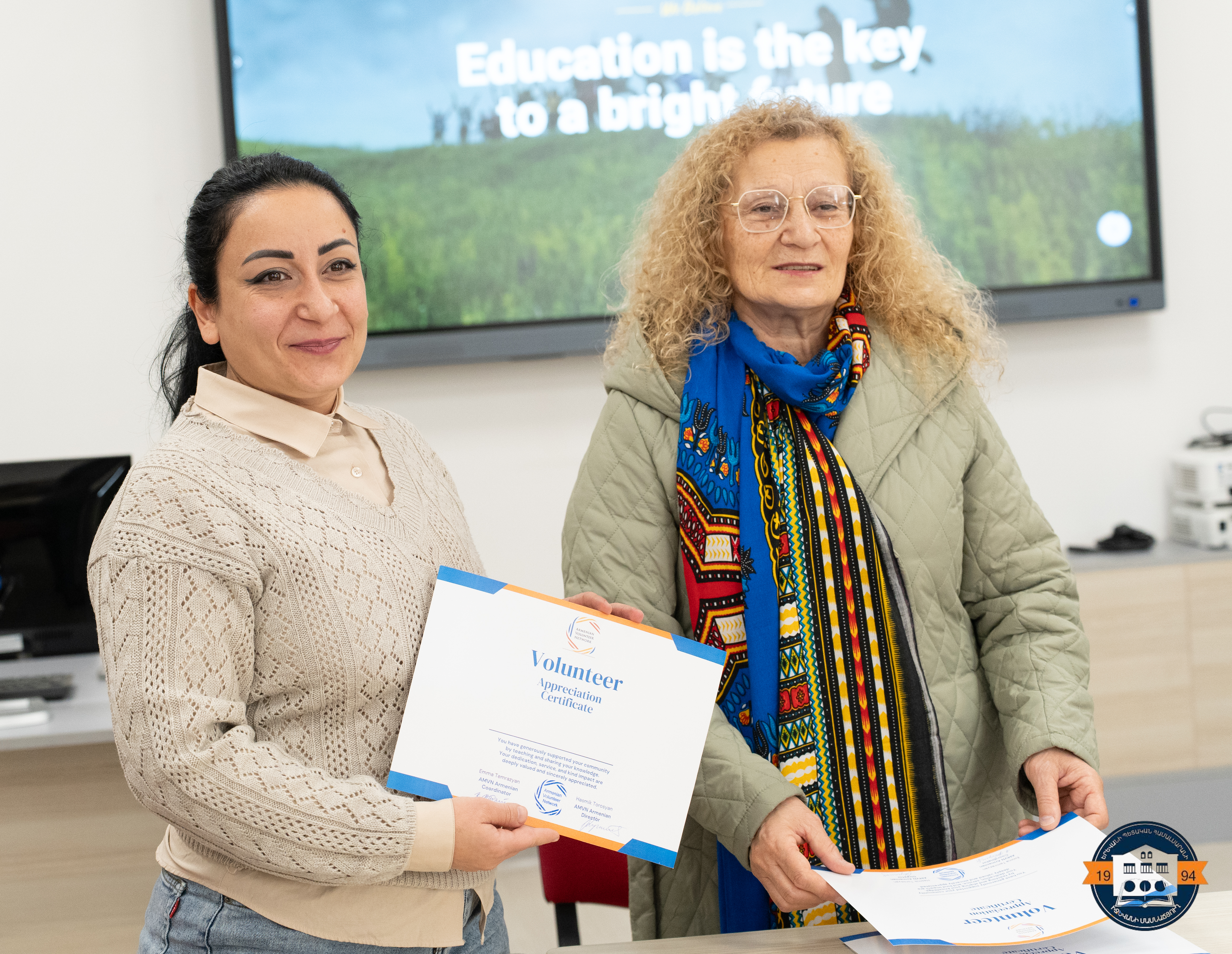 Հանդիպման վերջում Էմմա Թեմրազյանը «Հայ կամավորական ցանց» կազմակերպության կողմից շնորհակալագրեր հանձնեց մասնաճյուղի բոլոր կամավորներին և մեկ անգամ ևս շեշտեց, որ նրանք ազգանվեր գործ են կատարում՝ հայրենակիցներին տալով ամենաարժեքավորը՝ իրենց ժամանակն ու գիտելիքները: