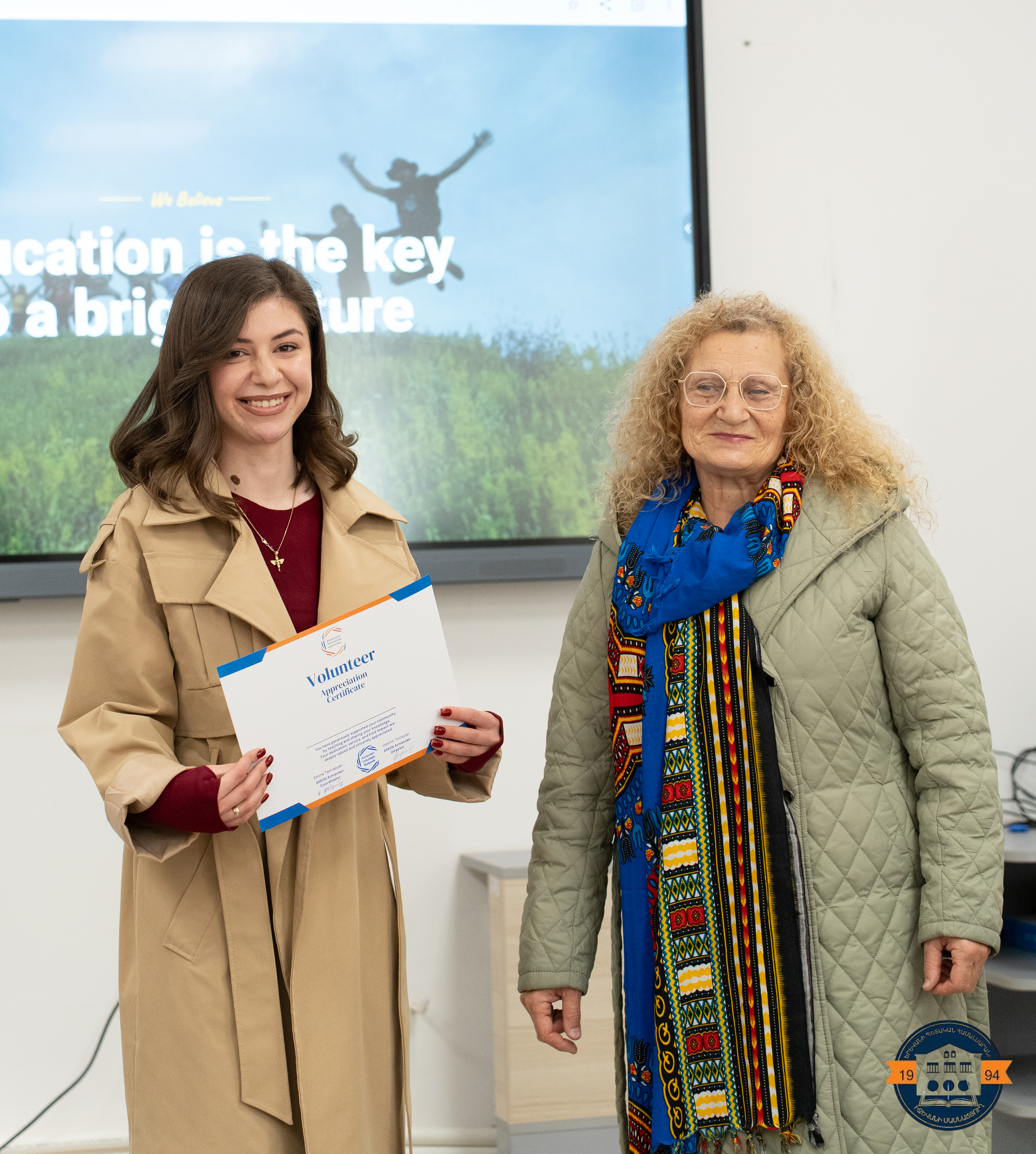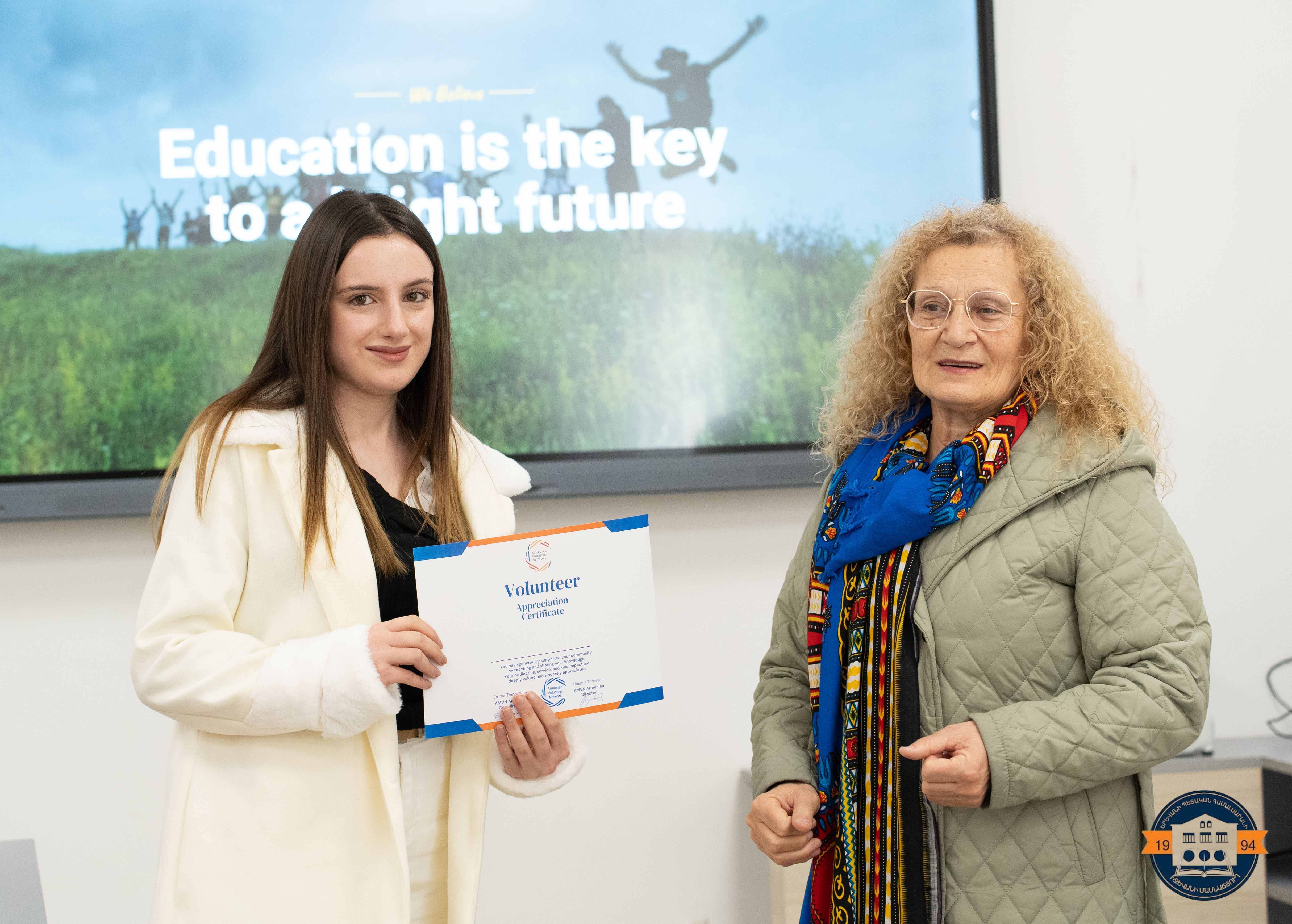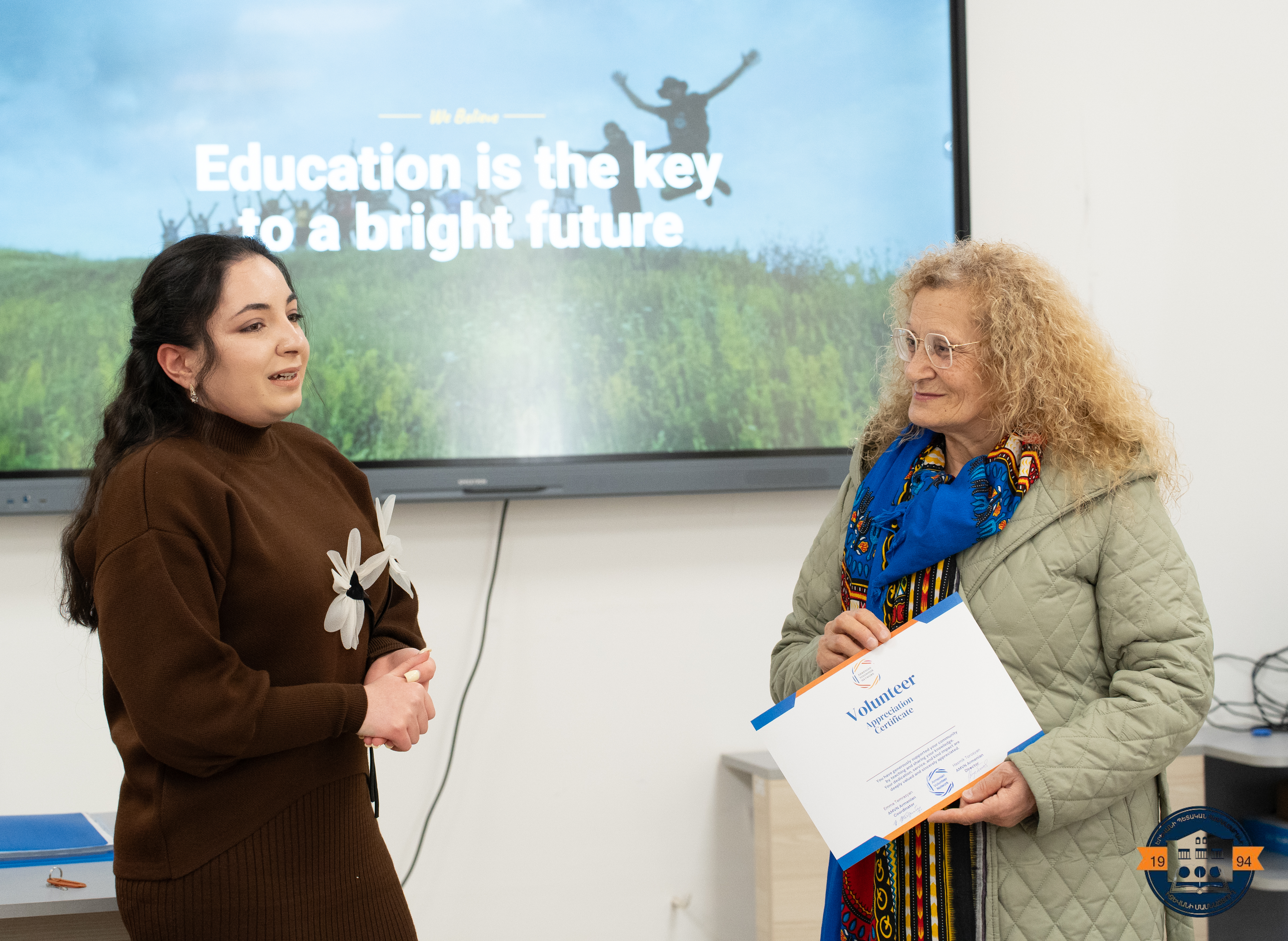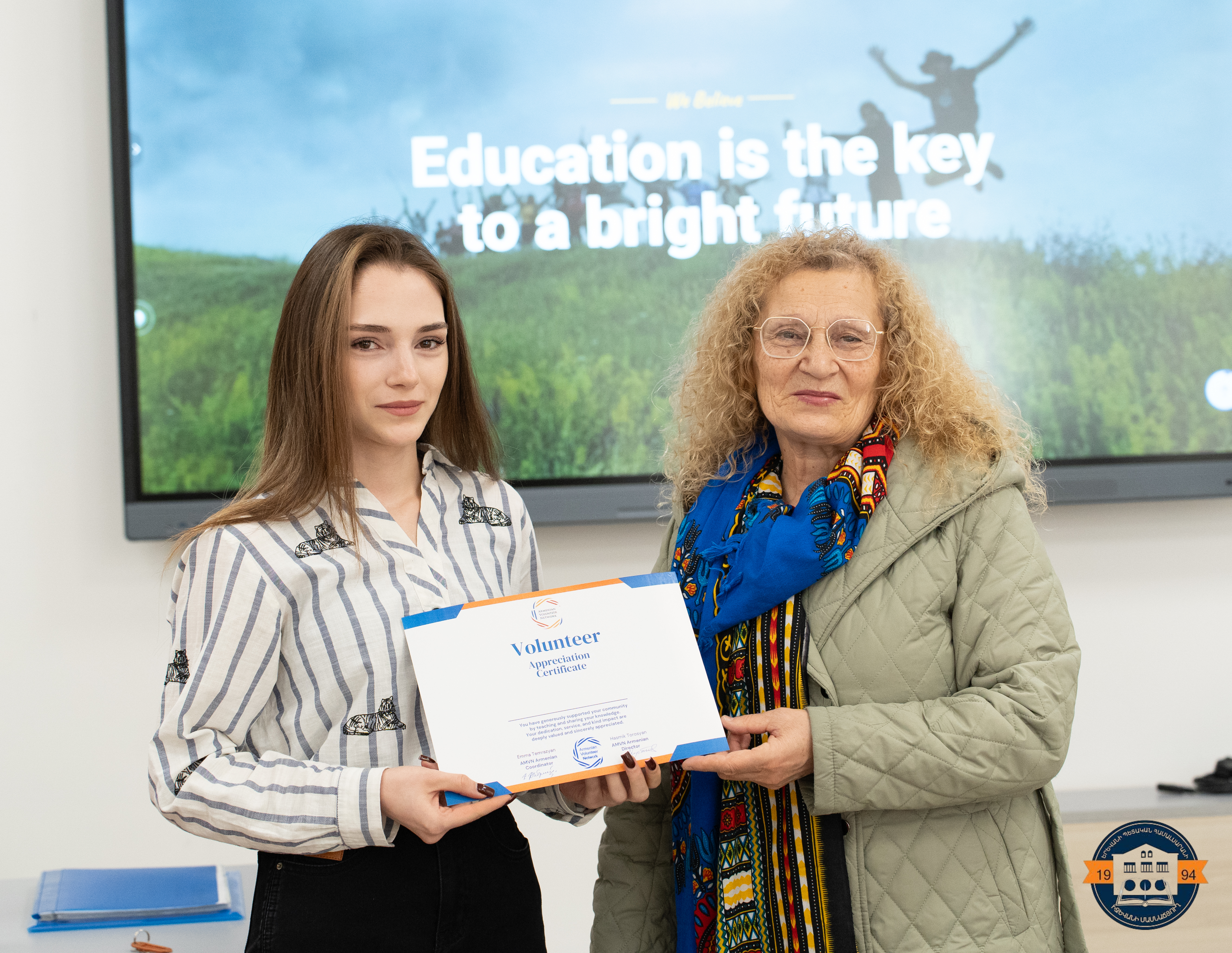 Հանդիպման վերջում Էմմա Թեմրազյանը «Հայ կամավորական ցանց» կազմակերպության կողմից շնորհակալագրեր հանձնեց մասնաճյուղի բոլոր կամավորներին և մեկ անգամ ևս շեշտեց, որ նրանք ազգանվեր գործ են կատարում՝ հայրենակիցներին տալով ամենաարժեքավորը՝ իրենց ժամանակն ու գիտելիքները: