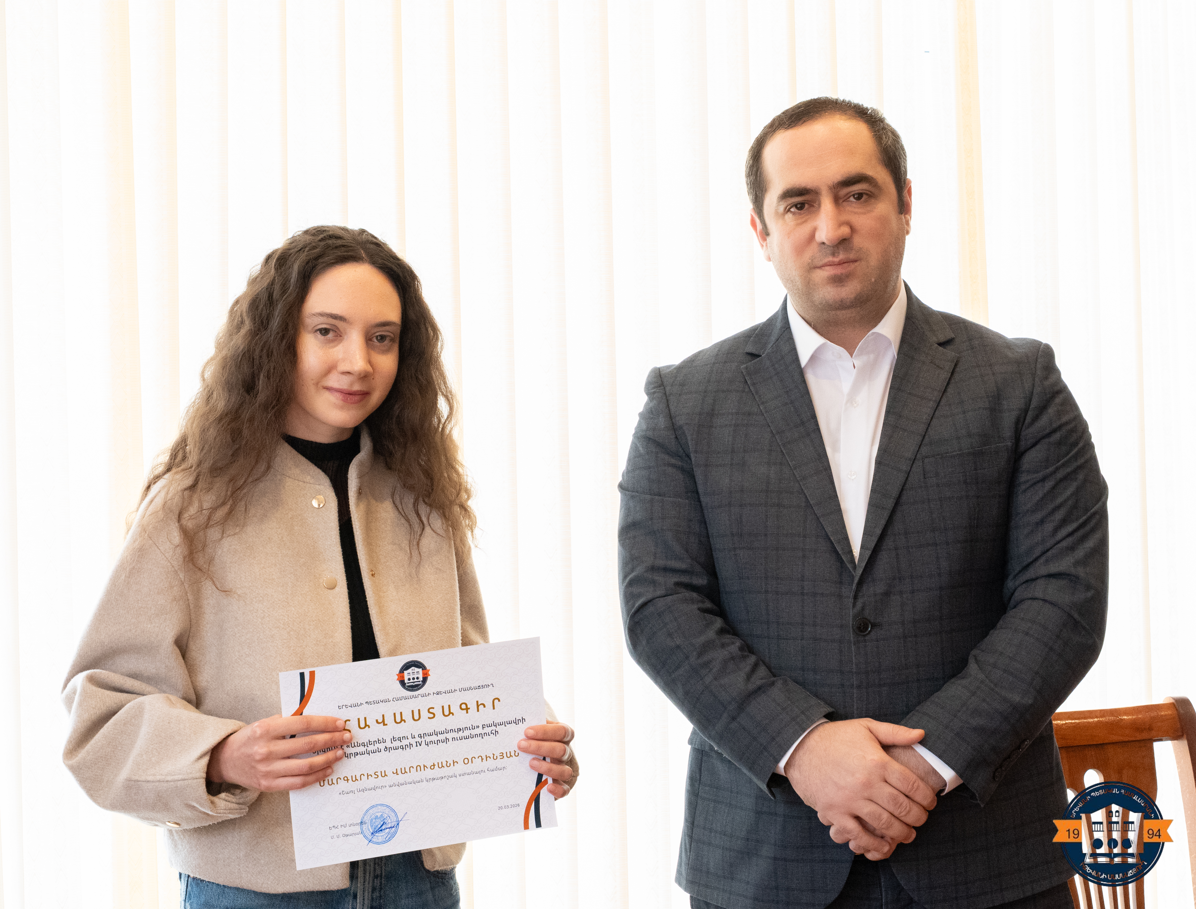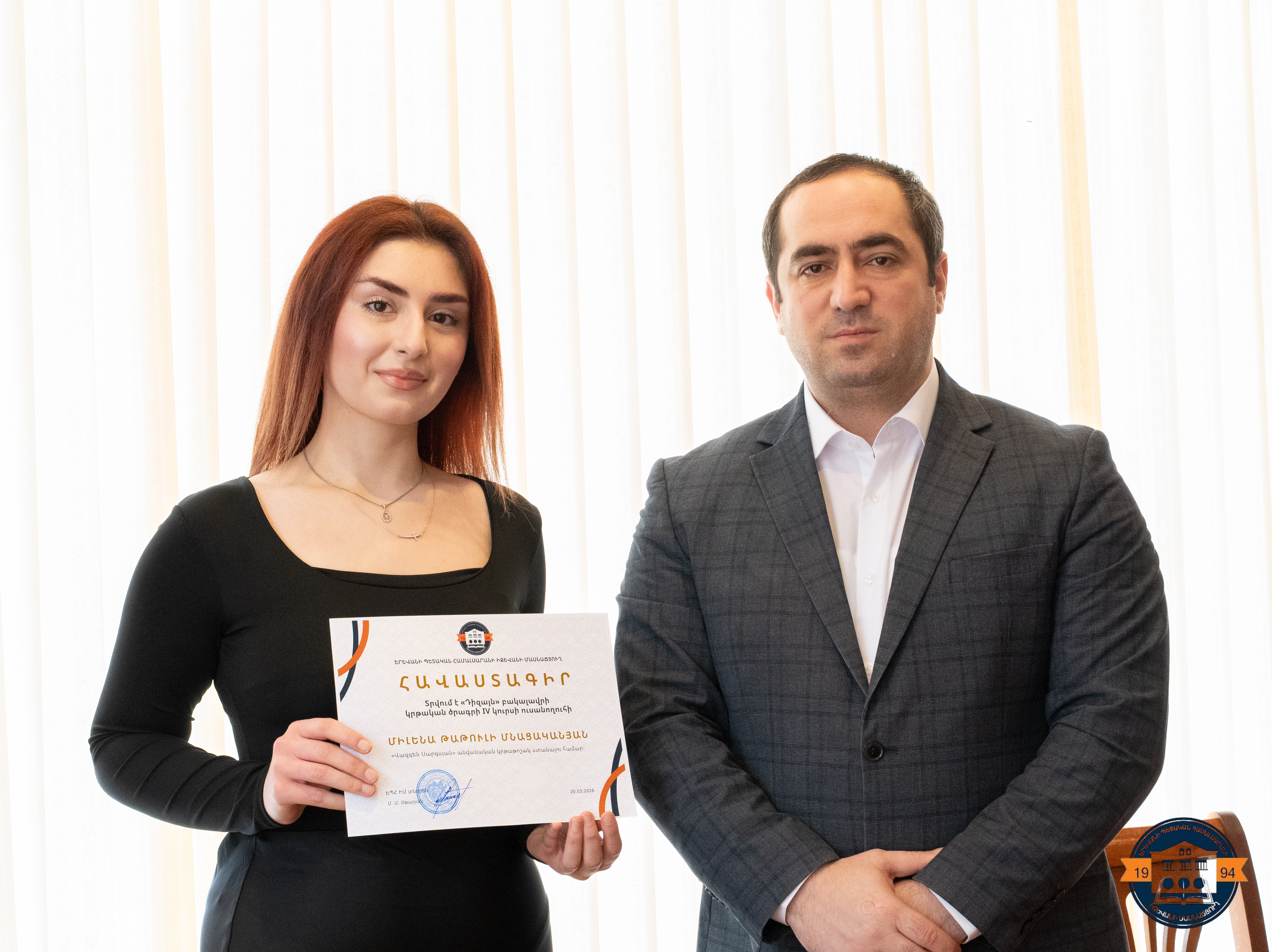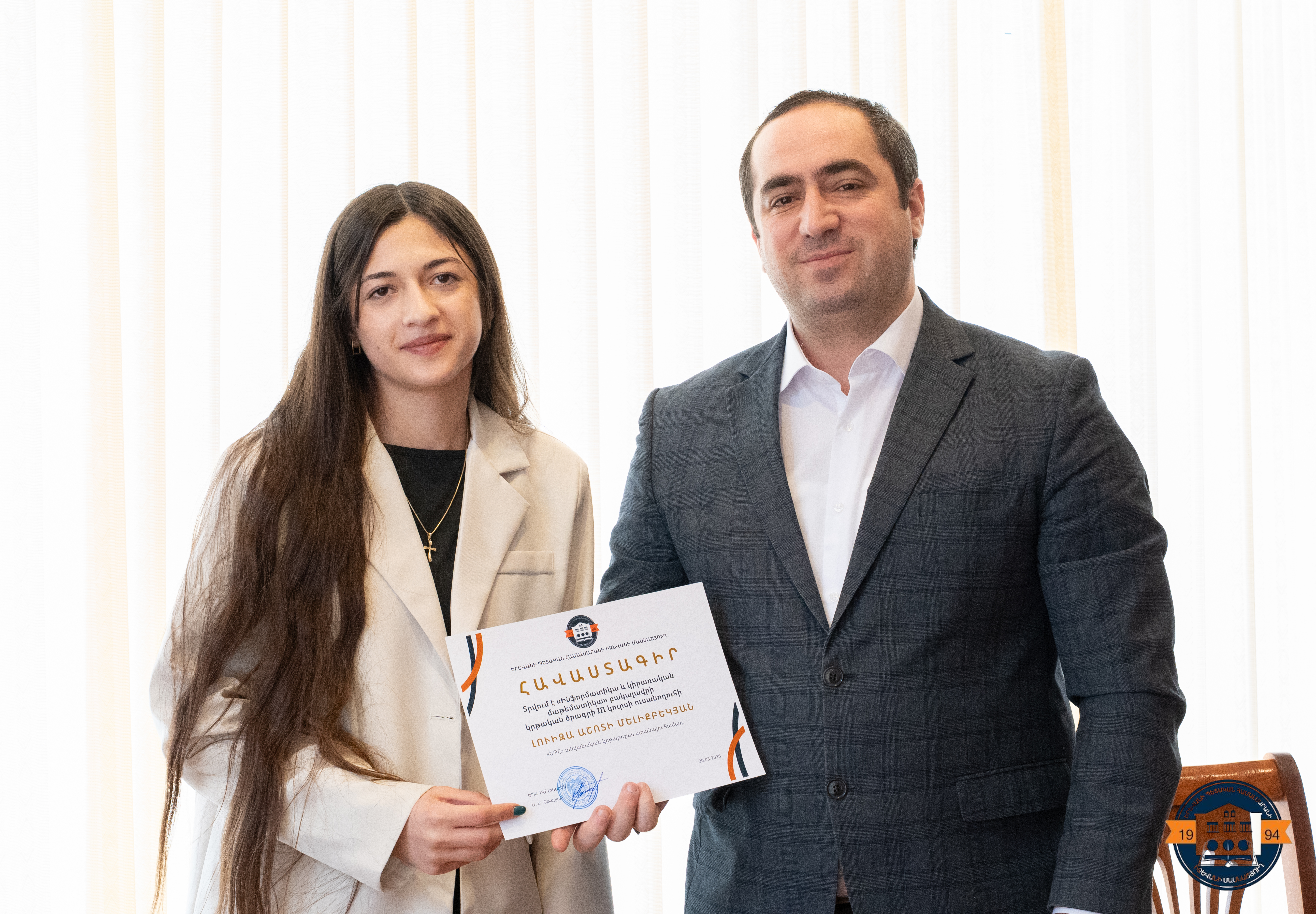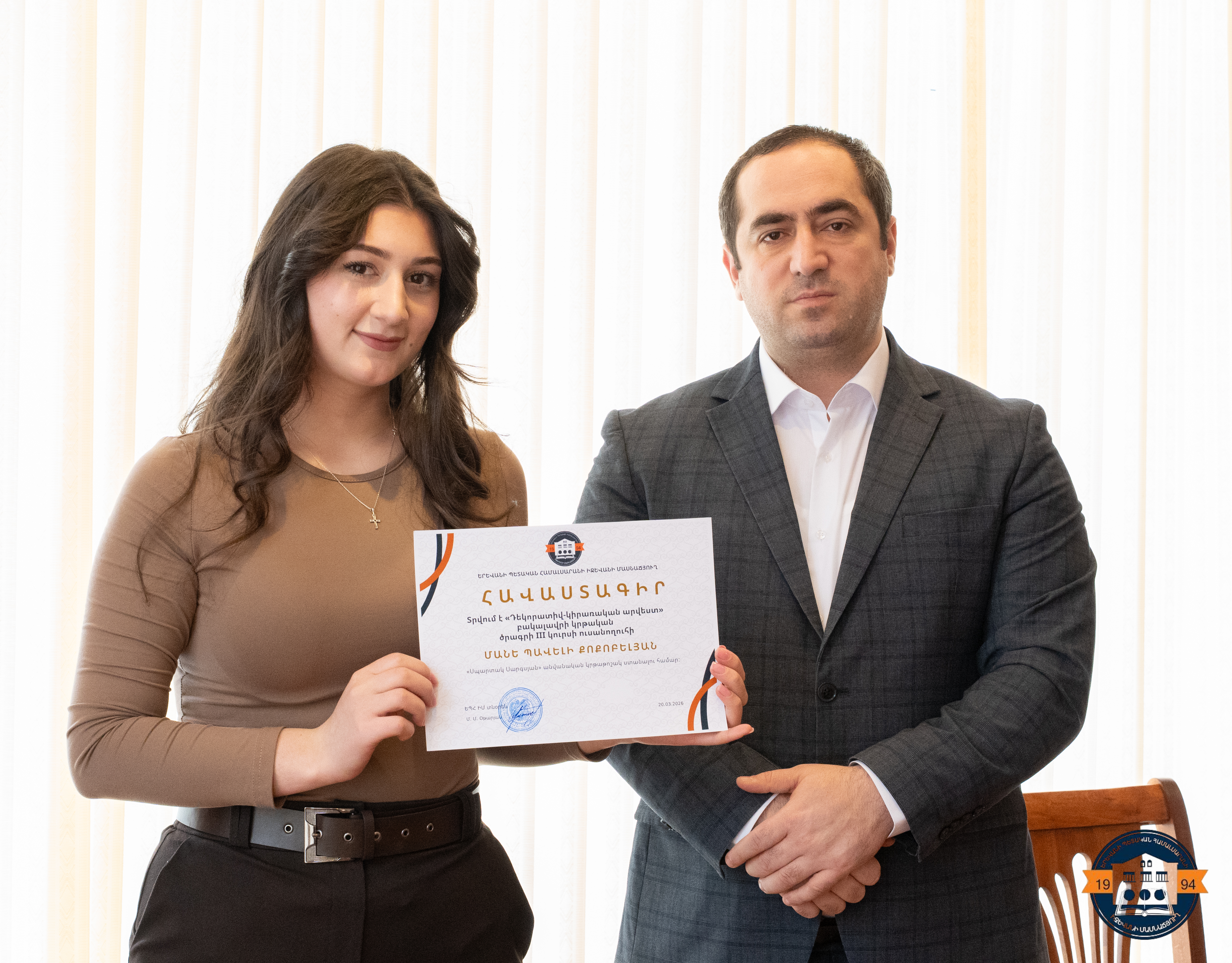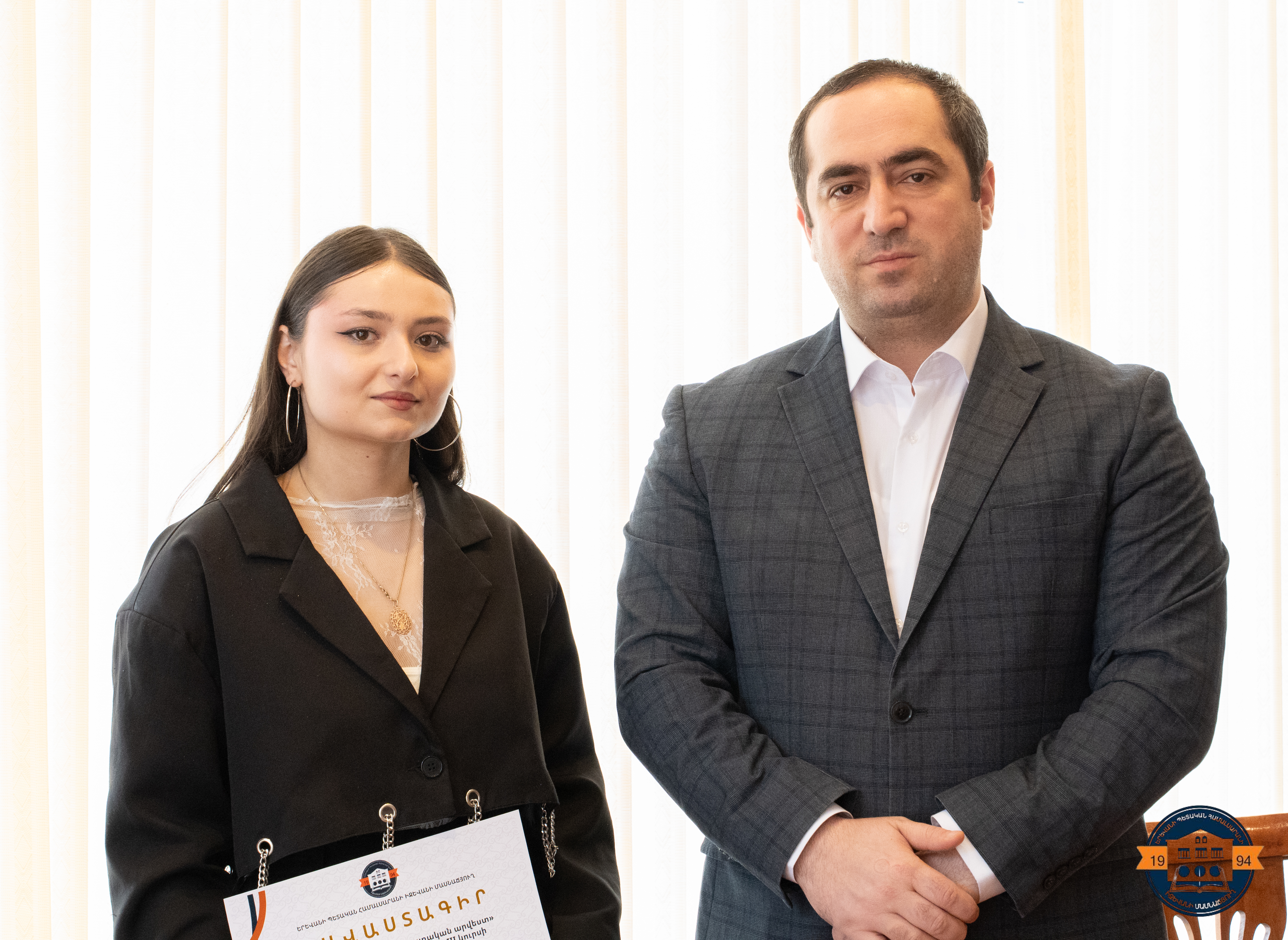 Հանդիպման նպատակն էր 2025-2026 ուսումնական տարվա երկրորդ կիսամյակում անվանական կրթաթոշակ ստացող ուսանողներին հավաստագրերի հանձնումը: