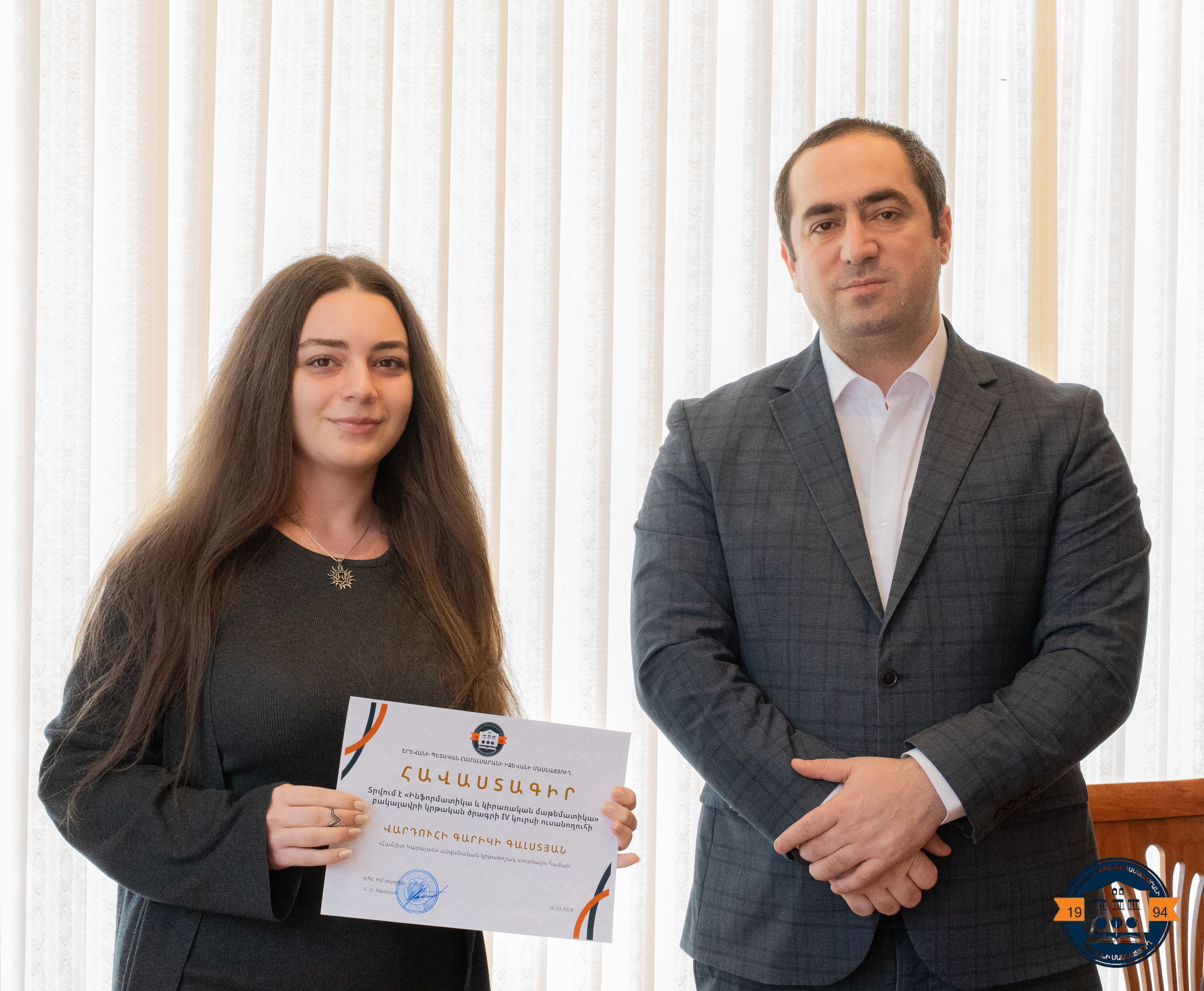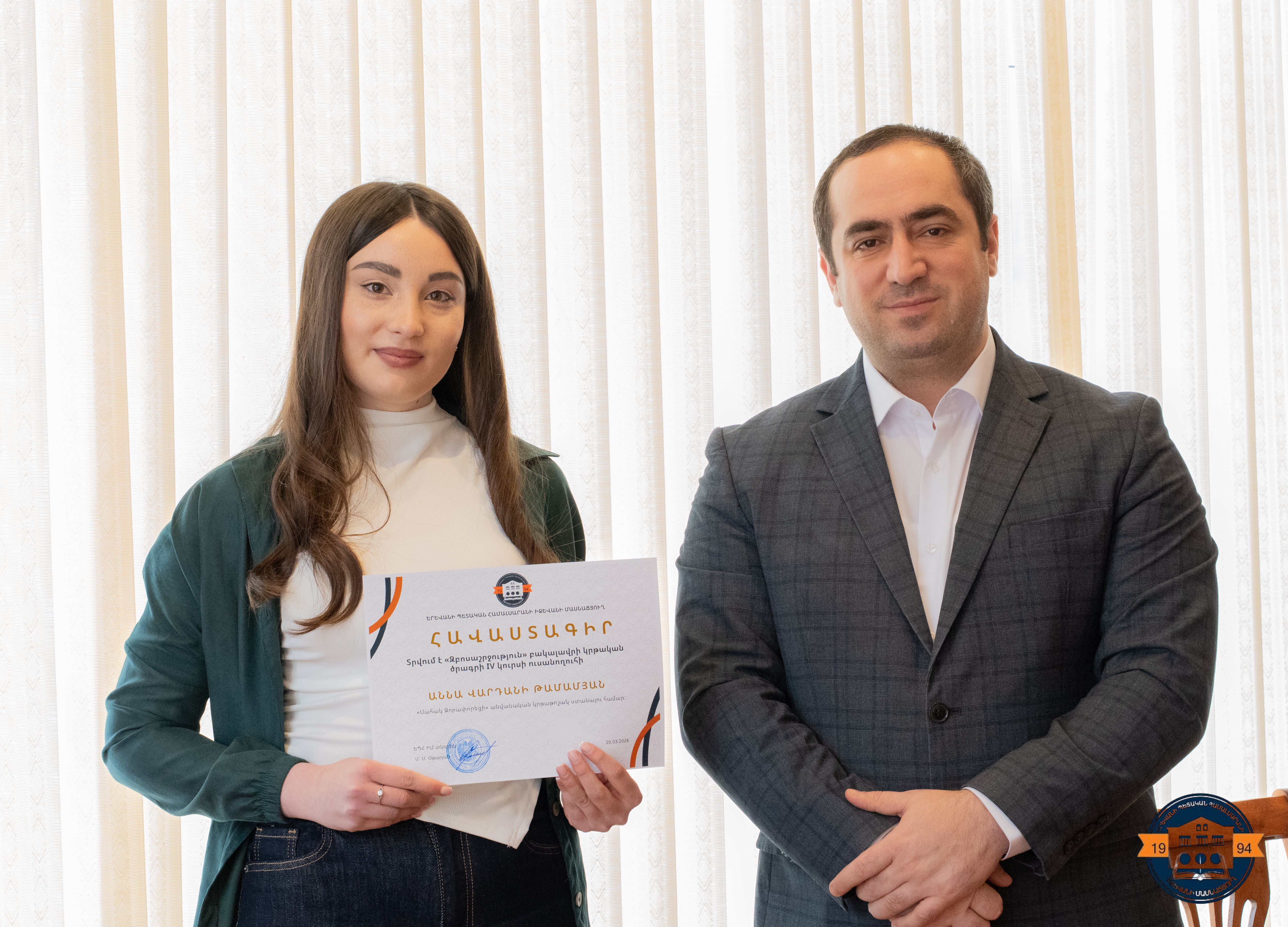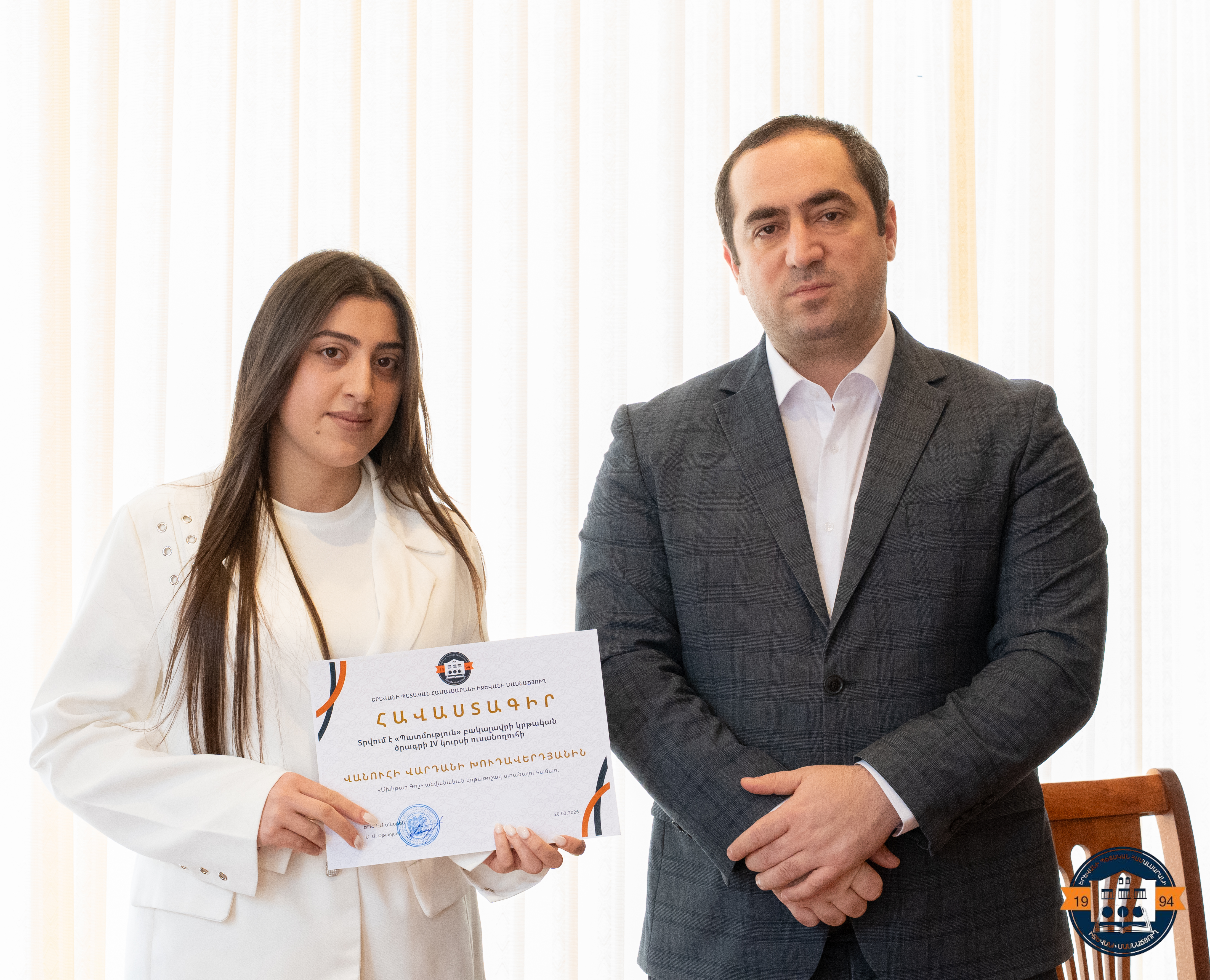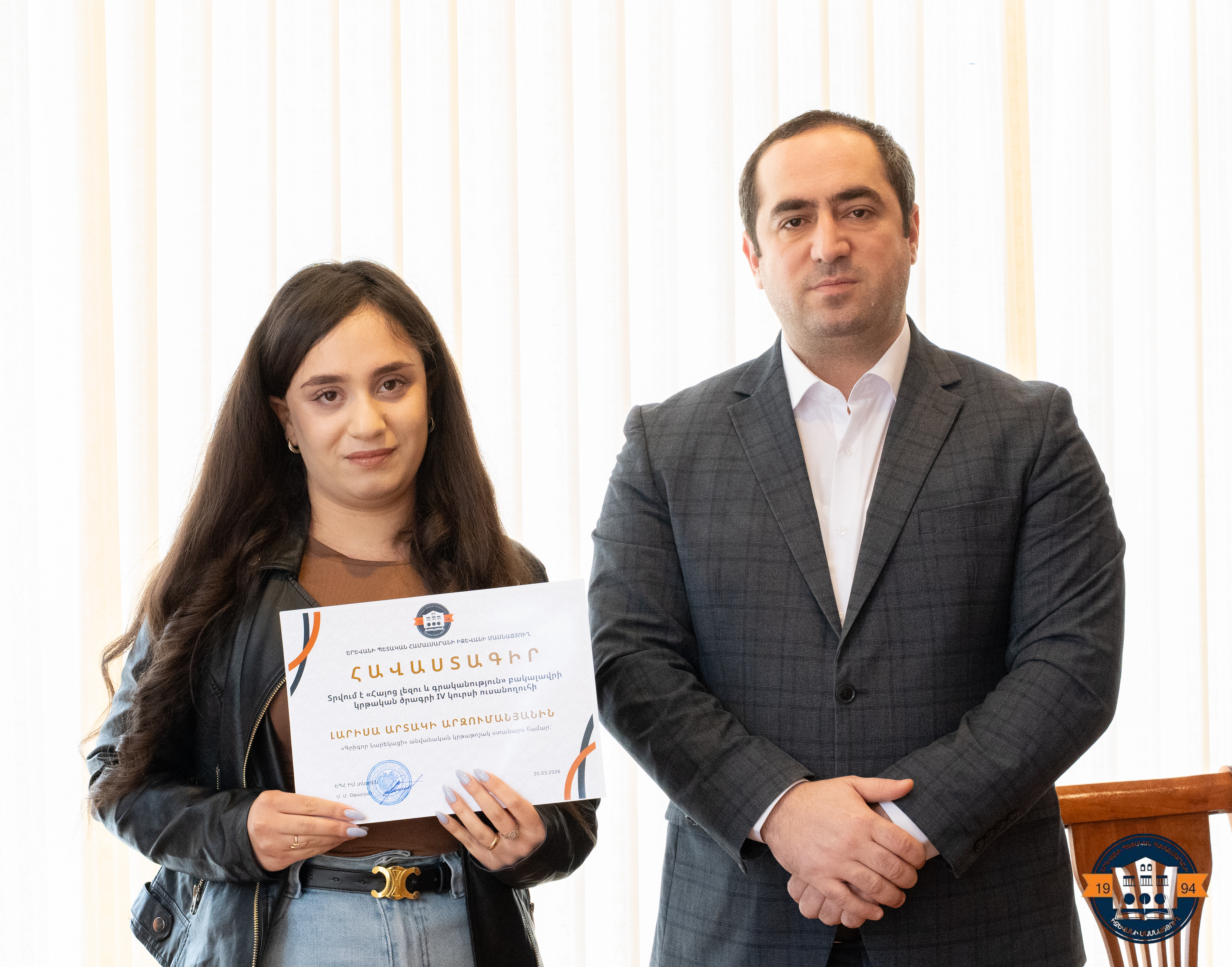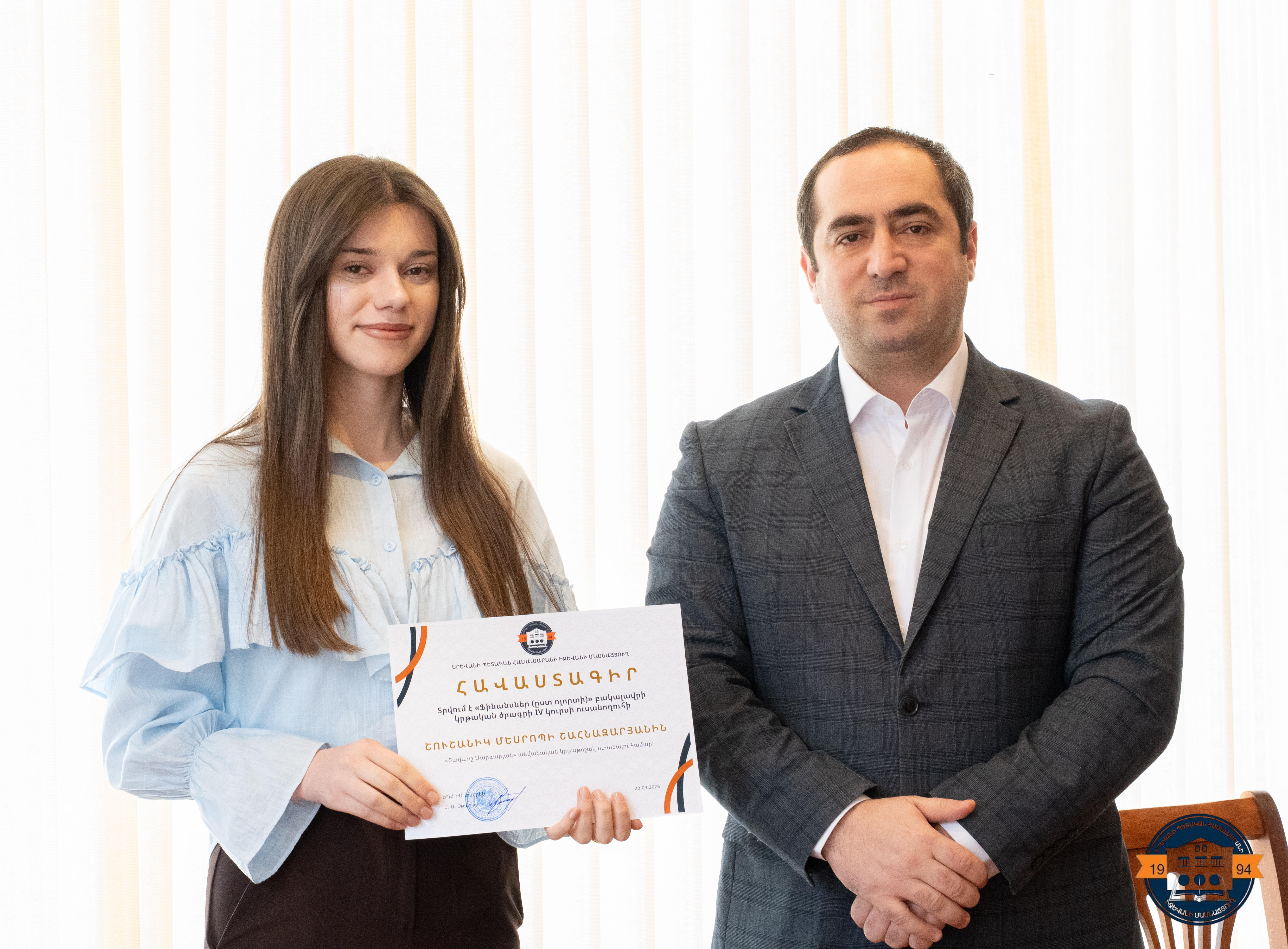 Հանդիպման նպատակն էր 2025-2026 ուսումնական տարվա երկրորդ կիսամյակում անվանական կրթաթոշակ ստացող ուսանողներին հավաստագրերի հանձնումը: