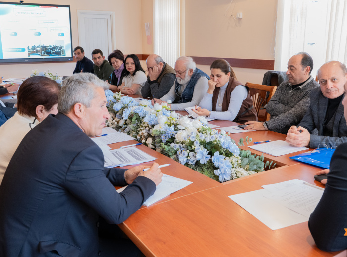 Image 30.11.2025 Գիտական խորհրդի նիստ Գիտաժողովներ ԵՊՀ Իջևանի մասնաճյուղում ս.թ. նոյեմբերի 29-ին Մ. Մ. Օթարյանի նախագահությամբ կայացավ Գիտական խորհրդի նիստ, որին մասնակցում էին ԵՊՀ ԻՄ գիտխորհրդի անդամները, այդ թվում՝ ԵՊՀ զարգացման և նորարարության գծով պրոռեկտոր Միքայել Հովհաննիսյանը: